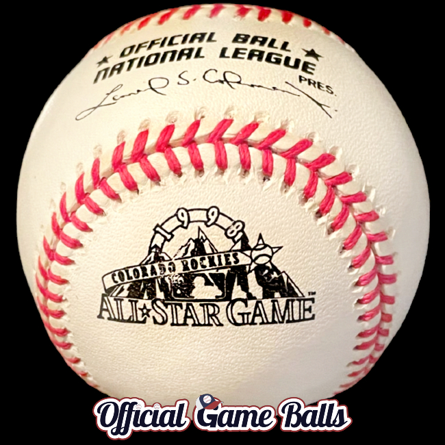 1983 NL Philadelphia 100th Anniversary (Feeney). 1992 NL St. Louis 100th Anniversary Red Logo (W. White) (Retail). 1992 NL St. Louis 100th Anniversary Black Ink (W. White) (Used in Game? Unknown). 1997 AL Cleveland Jacobs Field All-Star Game Edition. 1998 NL Arizona Inaugural Season Opening Day. 1998 AL Tampa Bay Inaugural Season. 1998 NL Colorado Coors Field Edition All-Star Game X2 New & Print Flaw/Sample. 1999 AL Boston Fenway Park Edition All-Star Game. 2000 Atlanta Turner Field Edition All-Star Game.